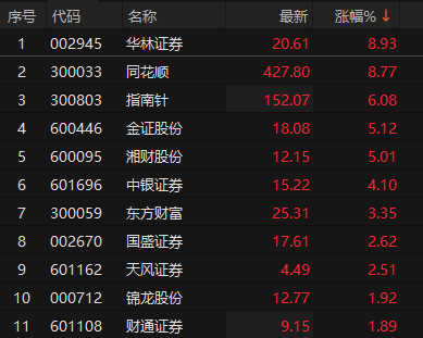 券商概念股震荡拉升 华林证券涨近9%