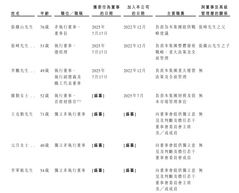 截至2026年1月6日,金星控股(由张铁山先生及张峰先生分别持有 90.00%及10.00%的权益)持有公司74.56%的权益;张铁山先生直接持有公司 9.94%的权益;张峰先生直接持有公司8.95%的权益;及张峰先生作为万财合壹号、万财合管理、万财合贰号、万财合三号及万财合伍号的普通合伙人,合共持有公司6.55%的权益。张铁山先生为张峰先生之父。