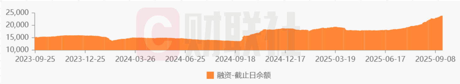 两融余额同样显著回升,近一年来的均值为1.88万亿,同比增长22.08%;融资余额超过2万亿的时间多达33个交易日,主要为8月5日以来的两融情况,9月17日、18日两日的融资余额均在2.4万亿上方。