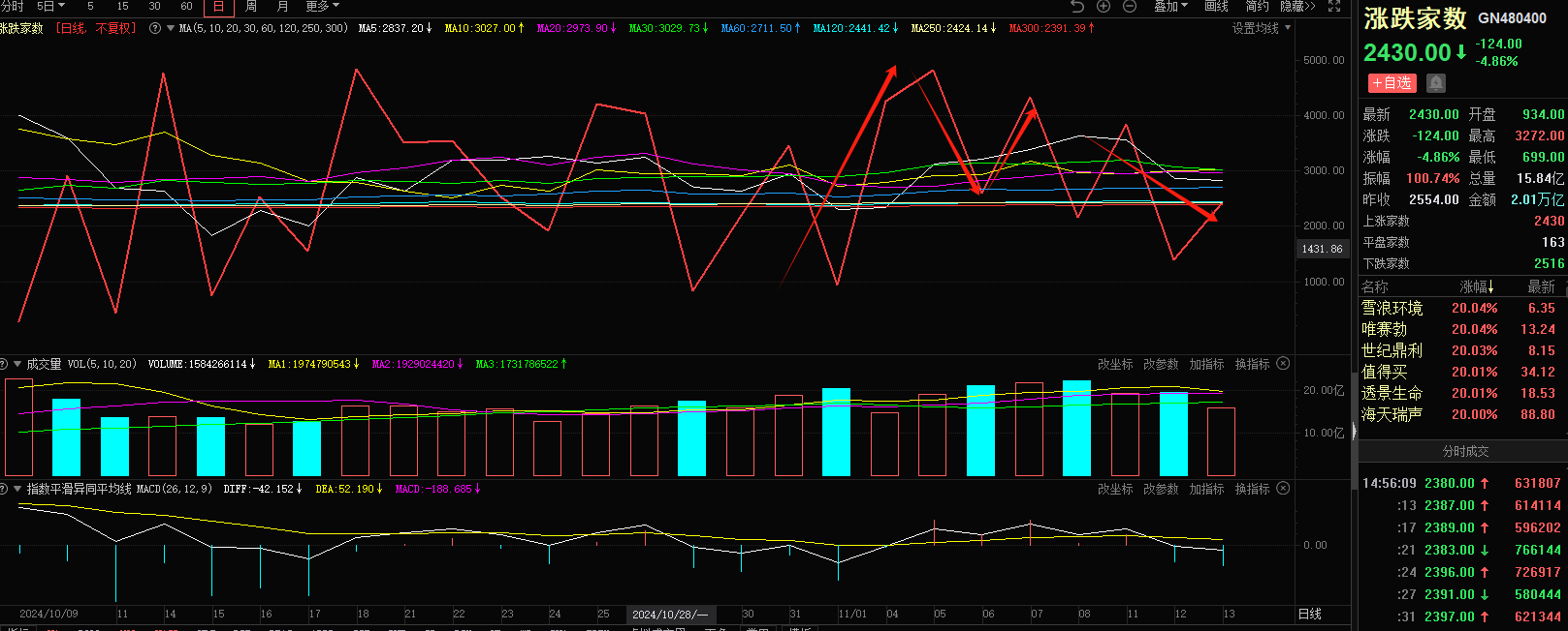总体而言:市场量能下降的过快资金直接被反噬,那么这个大周期其实已经确认走弱,最好的办法其实还是快进快出,将市场的情绪回暖点作为一次短线套利的机会即可,市场今日下跌家数近5000家,券商也连带补跌,成交额1.8万亿,数据出现最差表现,留意明日冰点转折反核机会,因为90%概率不可能继续近5000家跌停了。