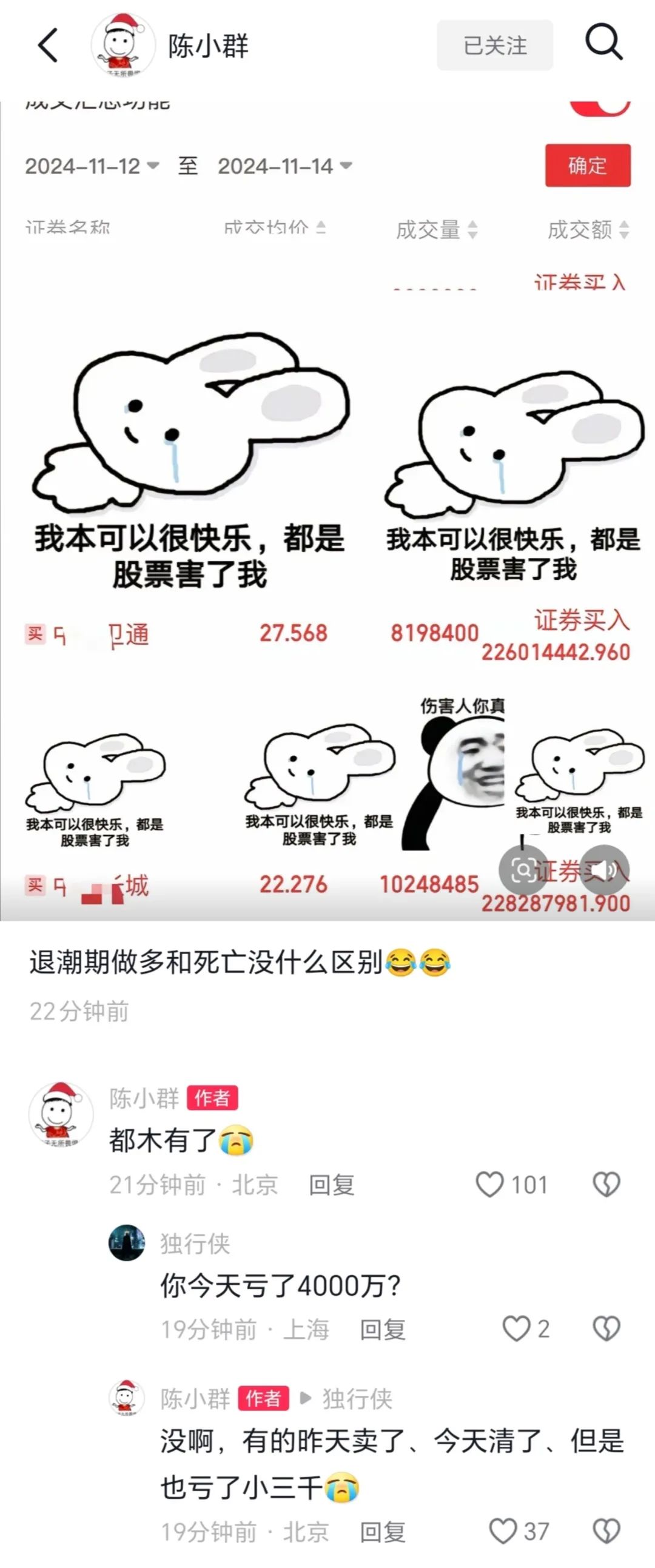 游资轶事:今天的供销大集买卖盘口真的有意思,由于受到市场整体退潮之后连续回撤的影响(抖音显示:陈小群直接亏3000万):