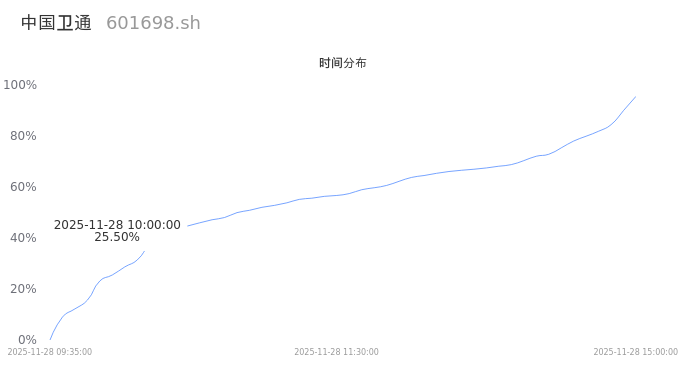 601698中国卫通2025年11月28日成交29.44万手,成交金额6.07亿,相较昨日放量8.99万手,换手率0.70%,成交清淡。