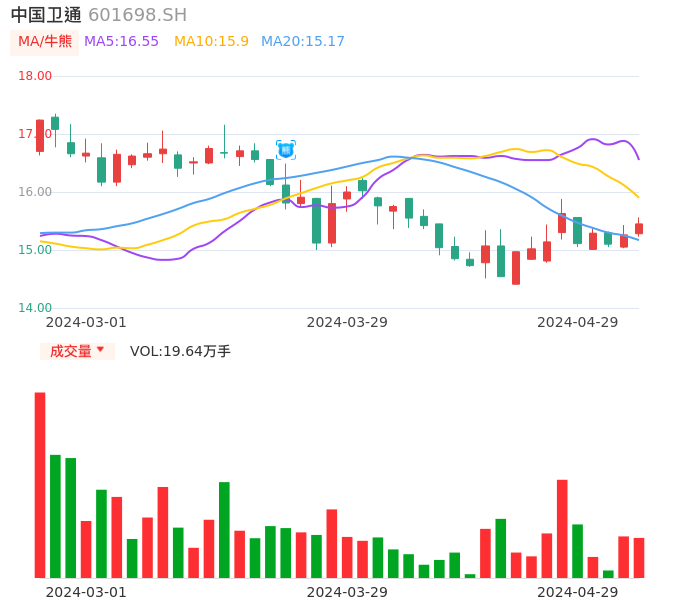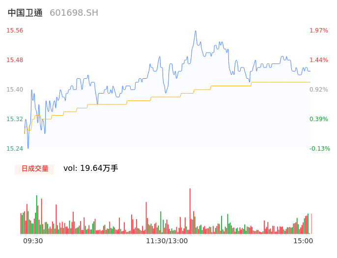 04月29日,中国卫通收报15.45,股价涨幅1.25%,成交金额3.03亿元,换手率0.46%。