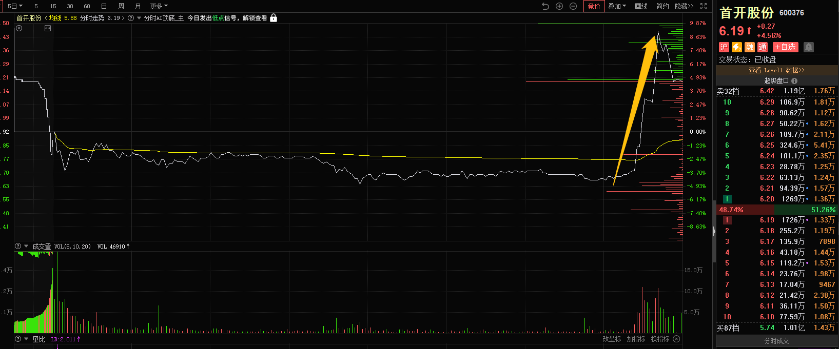 而商业航天下午的回暖,首先还是再升科技带来的,我们中午就提示大家关注分时是否重回均价线上方,果然下午就修复,还一度触及涨停,尾盘虽然跌破又重新拉回涨停板。除此之外就是中国卫星和中国卫通2大卫星龙头,中国卫星3连板,总市值直逼千亿,中国卫通千亿市值涨停狂飙。也是商业航天尾盘情绪没有出现跳水的关键。