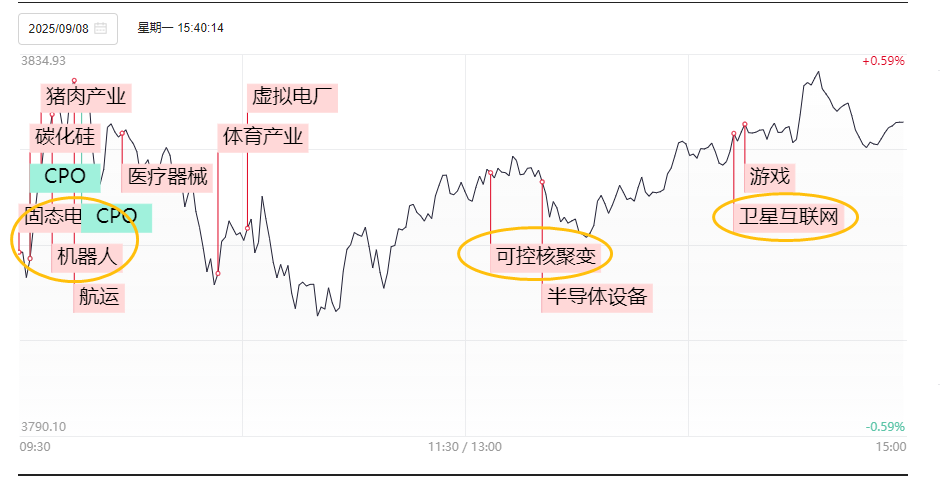 总之在上周五的阳包阴之后叠加9月美联储降息预期的到来,行情趋势依旧看震荡向上,但在科技股行情分化后,这个阶段题材轮动快,要想踏准每一个节奏确实很难,尤其是追涨杀跌的话,建议大家可以适当考虑先看板块逻辑催化,再找节点低吸,等待上涨脉冲的兑现机会!