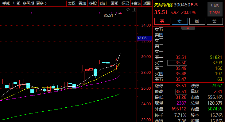 此外,新能源车今日继续强势上攻,板块指数再创阶段性新高,距历史最高点仅一步之遥。板块内个股掀涨停潮,荣亿精密30%涨停,先导智能20%涨停,捷众科技、国轩高科、宁波华翔等逾20股亦强势涨停或涨超10%。
