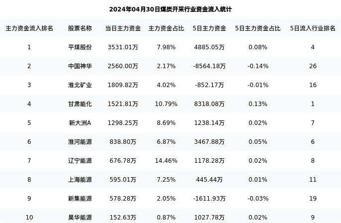 从主力资金流向来看,煤炭开采行业今日主力资金流入27.42亿元,在所有申万二级行业中排名:16/131。