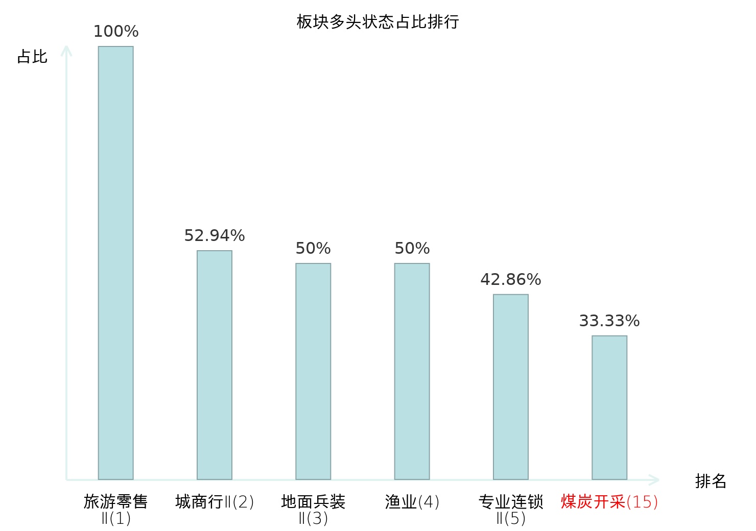 全市场所有行业板块中主力多头状态占比排名中,旅游零售Ⅱ板块位居第一。旅游及景区板块名次提升最快,较昨日上升69位。