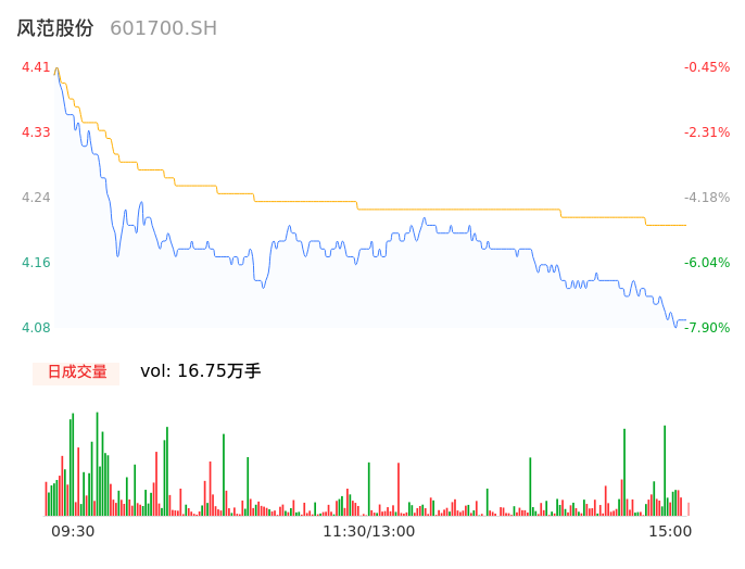 04月16日,风范股份收报4.09,股价涨幅-7.67%,成交金额7043.16万元,换手率1.47%。