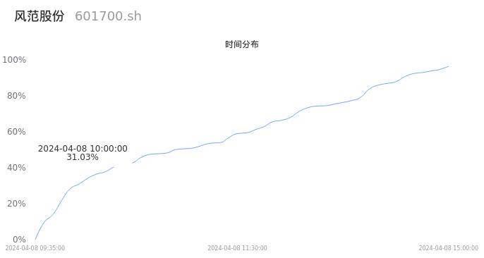 601700风范股份2024年04月08日成交9.98万手,成交金额4554.91万元,相较昨日缩量4.59万手,换手率0.87%,成交清淡。