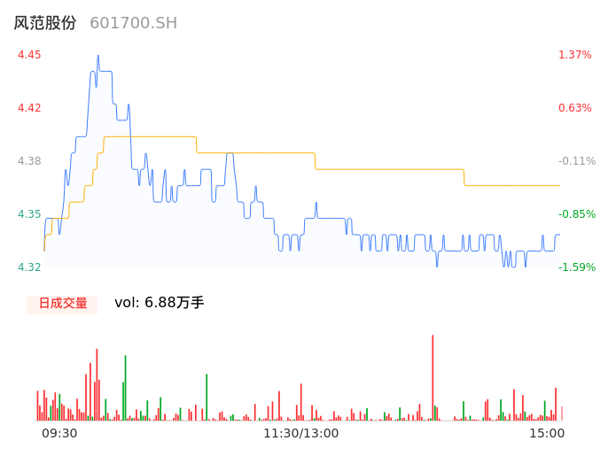 04月19日,风范股份收报4.34,股价涨幅-1.14%,成交金额3005.70万元,换手率0.60%。