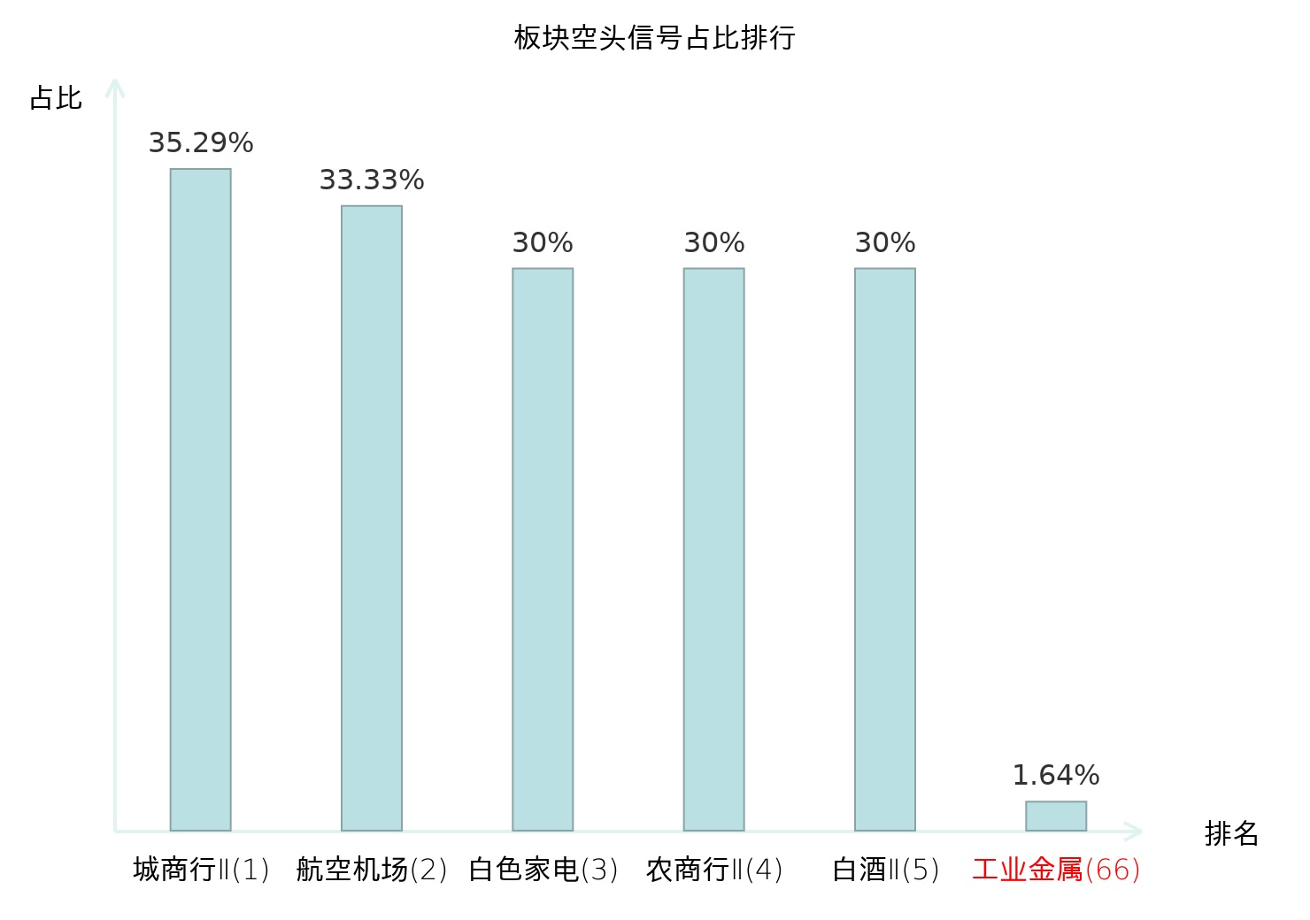 全市场所有行业板块中主力空头信号占比排名中,城商行Ⅱ板块位居第一。饮料乳品板块名次提升最快,较昨日上升106位。
