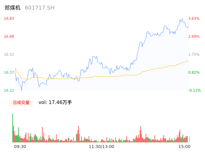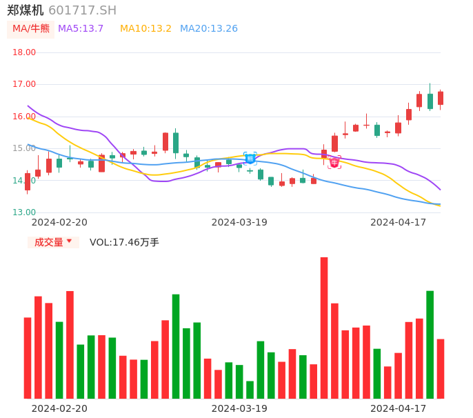 04月17日,郑煤机收报16.77,股价涨幅3.26%,成交金额2.88亿元,换手率1.14%。