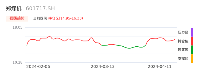 我们来看一下该股的九方特色指标强弱趋势的情况:郑煤机自03月29日从观望区上穿到持仓区。股价近期在多头区域持续强势上扬,上升动能仍较为充足,可积极关注。后续重点关注上方压力位:16.33元是否能突破上攻。