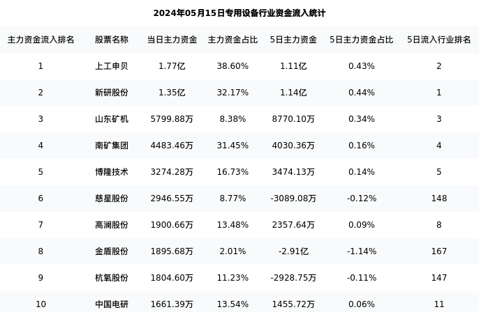 从主力资金流向来看,专用设备行业今日主力资金流入36.95亿元,在所有申万二级行业中排名:114/131。