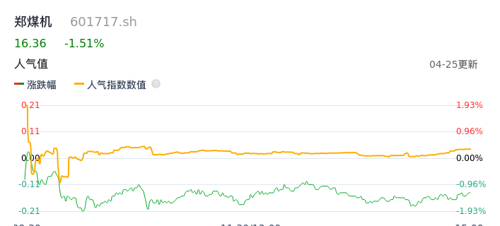 04月25日,郑煤机收报16.36,股价涨幅-1.51%,成交金额1.78亿元,换手率0.71%。