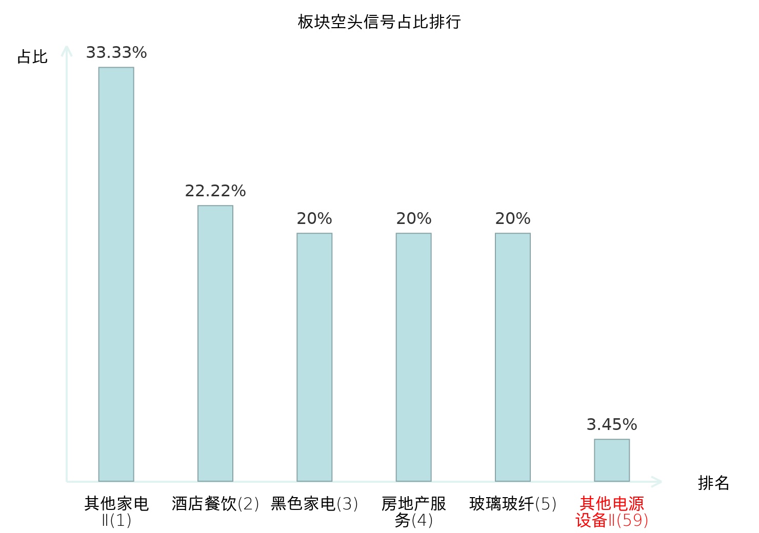 全市场所有行业板块中主力空头信号占比排名中,其他家电Ⅱ板块位居第一。家居用品板块名次提升最快,较昨日上升111位。