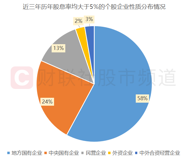 注:近三年(2020年至2022年)历年股息率均大于5%的个股企业性质分布情况