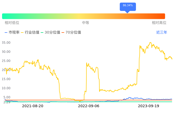 2023年09月20日,中国电信下跌1.33%收于5.95,今日成交金额5.88亿元。下文将从市盈率PETTM、市净率PB、市现率3个角度去分析公司估值情况。