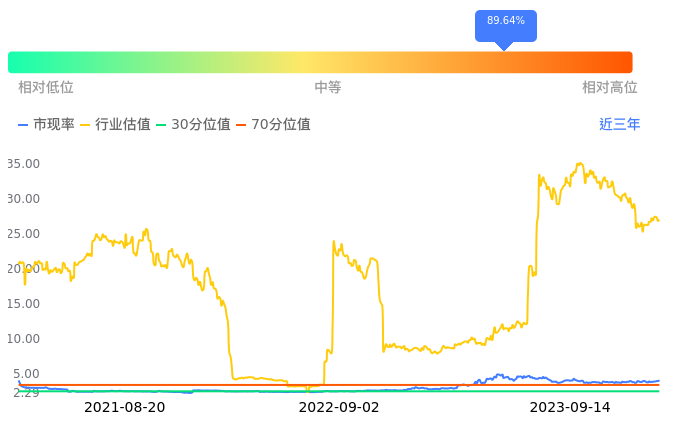 中国电信当前市现率为4.12,在所属的通信服务中,市现率排2,前5名分别为、中国联通市现率1.69、中国电信市现率4.12、中国移动市现率7.37、数据港市现率9.16、光环新网市现率9.97。中国电信当前市现率为4.12,超过近3年89.64%的历史数据。