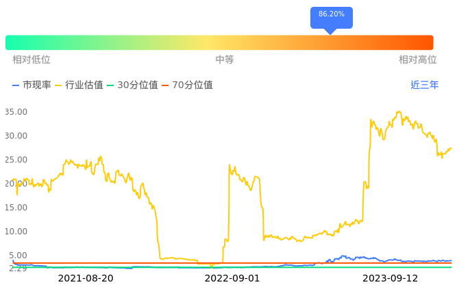 2023年09月12日,中国电信上涨1.52%收于6.00,今日成交金额10.18亿元。下文将从市盈率PETTM、市净率PB、市现率3个角度去分析公司估值情况。