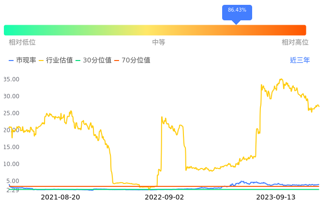 2023年09月13日,中国电信上涨0.33%收于6.02,今日成交金额11.55亿元。下文将从市盈率PETTM、市净率PB、市现率3个角度去分析公司估值情况。