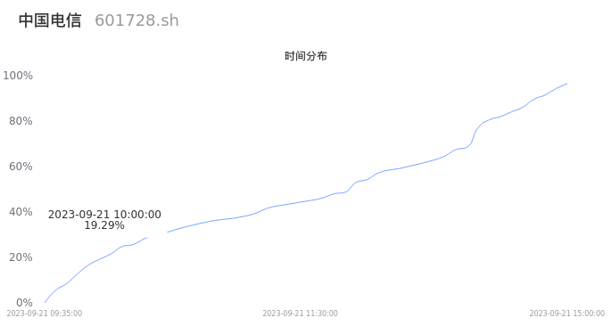 601728中国电信2023年09月21日成交96.01万手,成交金额5.73亿元,相较昨日缩量2.19万手,换手率0.49%,成交清淡。
