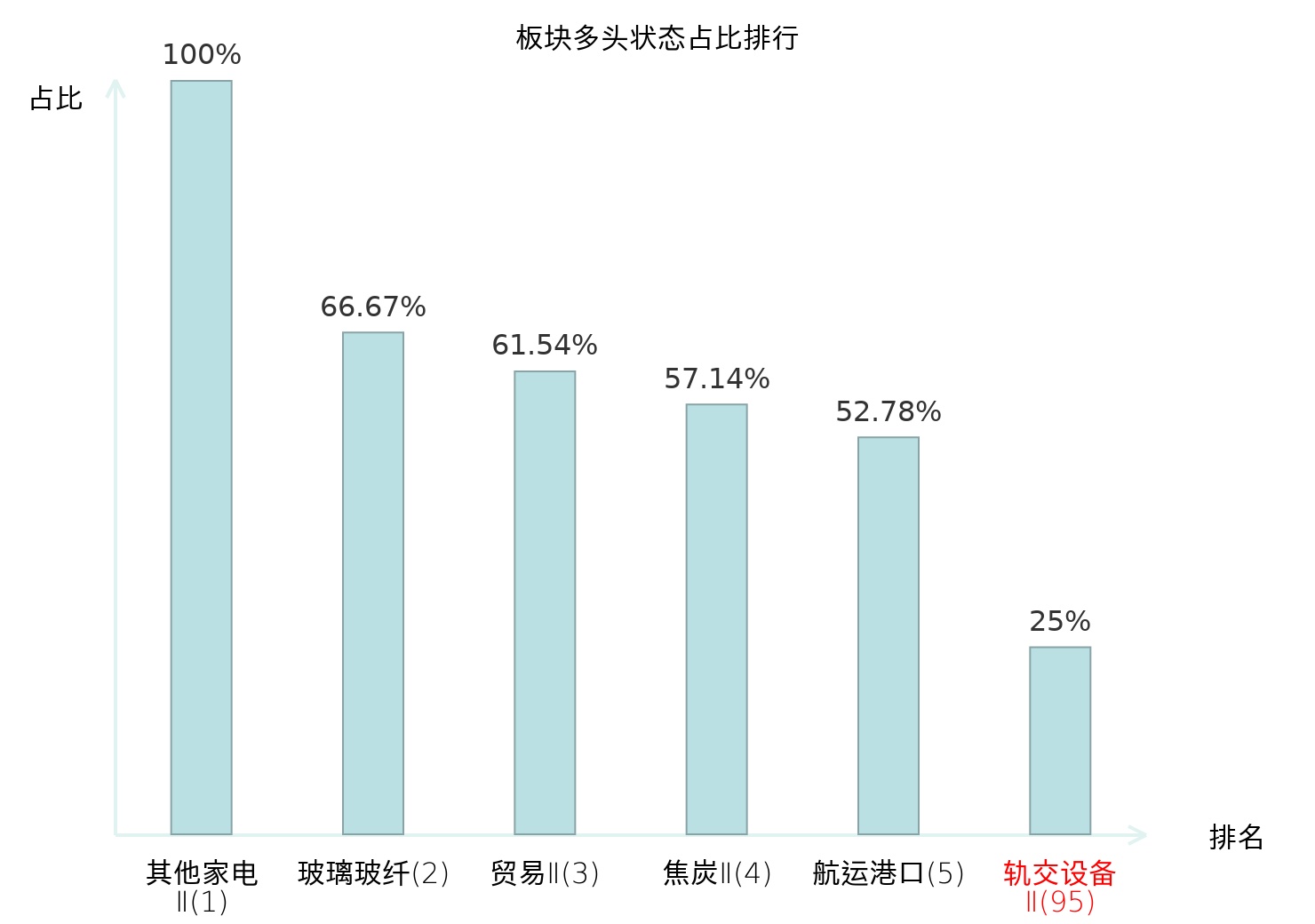 全市场所有行业板块中主力多头状态占比排名中,其他家电Ⅱ板块位居第一。影视院线板块名次提升最快,较昨日上升62位。
