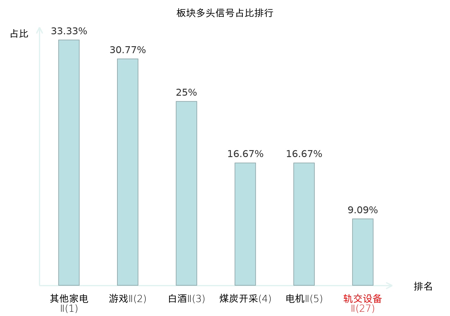 全市场所有行业板块中主力多头信号占比排名中,其他家电Ⅱ板块位居第一。其他家电Ⅱ板块名次提升最快,较昨日上升128位。