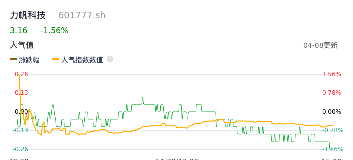 04月08日,力帆科技收报3.16,股价涨幅-1.56%,成交金额4829.17万元,换手率0.33%。