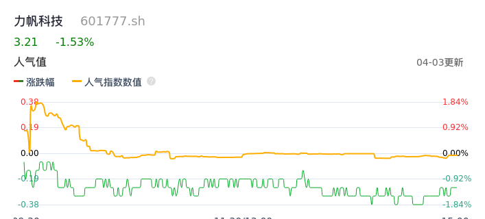 04月03日,力帆科技收报3.21,股价涨幅-1.53%,成交金额4106.86万元,换手率0.28%。