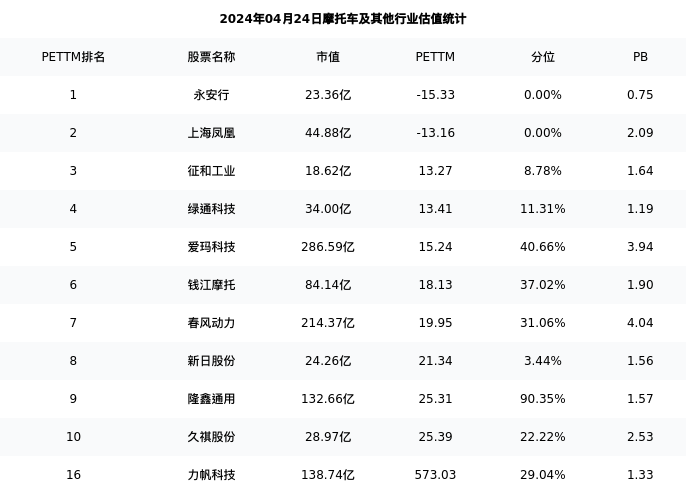 从估值角度看:力帆科技最新市盈率PETTM为573.03,在行业内排名14/16,处于29.04分位。