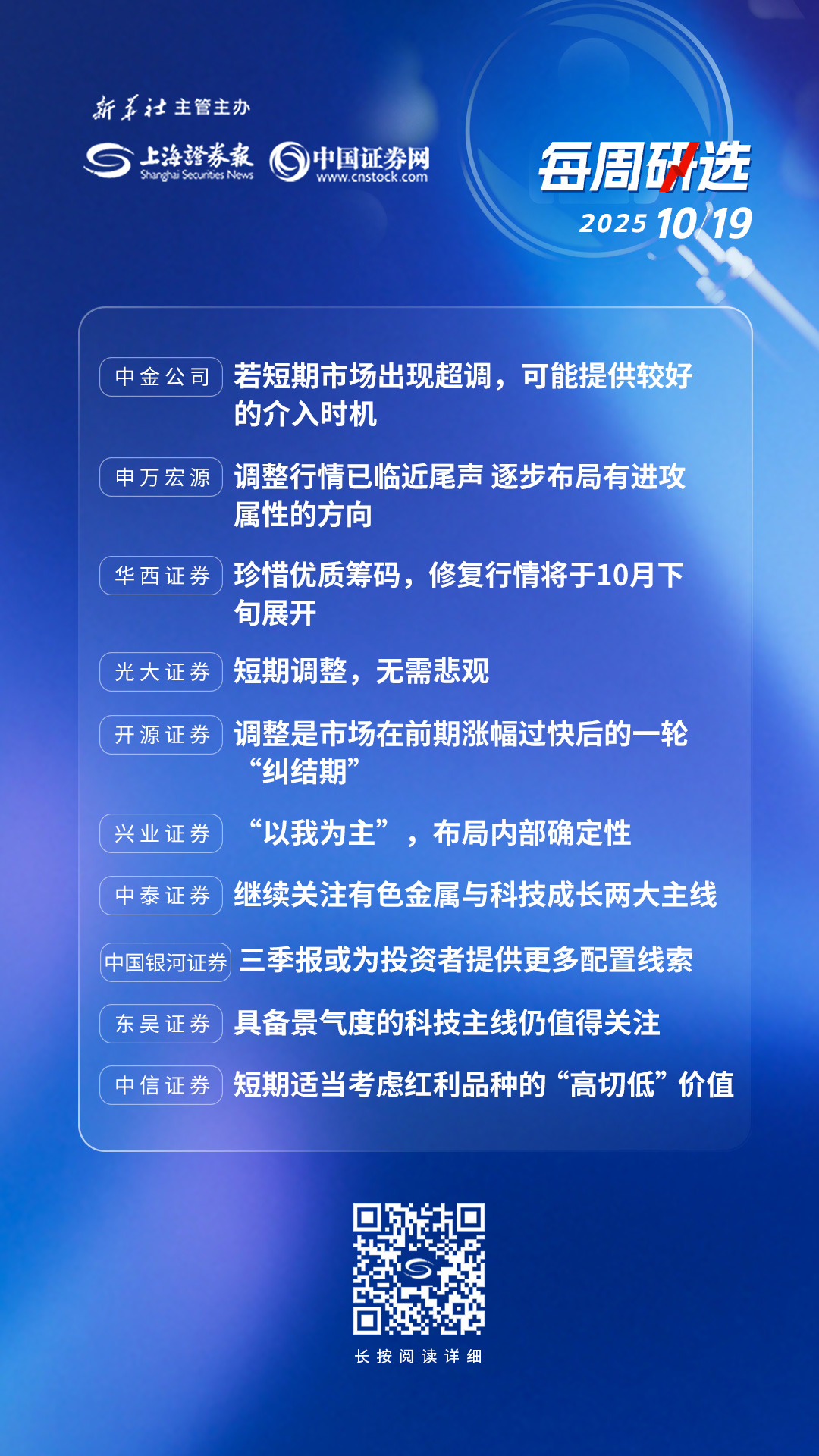 与4月7日各行业和风格指数普跌不同,十月以来的本轮市场调整更多体现为资金高低切换。当前,融资资金和ETF资金整体仍处于净流入态势,体现出股市微观流动性仍较充裕。此外,资本市场“稳市机制”建设和投资者回报制度完善是本轮行情区别于以往的最大特征,也是A股持续上行的制度基石。当前中国资产整体不贵,珍惜优质筹码,短暂颠簸后,A股修复行情将于10月下旬缓慢展开。