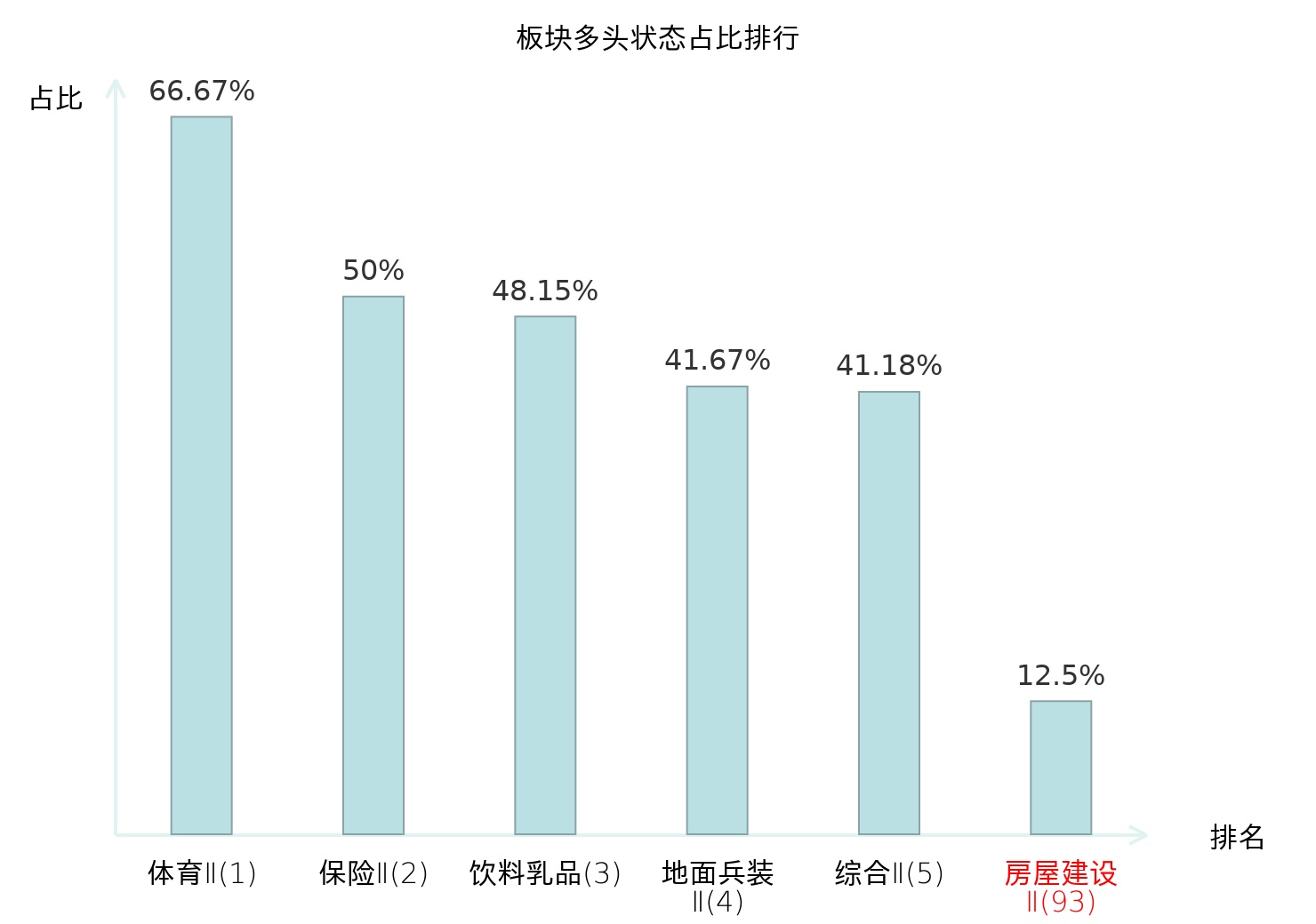 全市场所有行业板块中主力多头状态占比排名中,体育Ⅱ板块位居第一。种植业板块名次提升最快,较昨日上升70位。