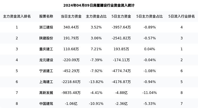 宁波建工今日净流出452.29万元,主力占比7.92%,在行业内排名:5/8;5日净流出4774.74万元,主力占比1.08%,在行业内排名:6/8。