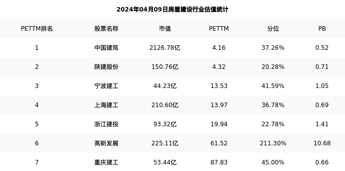 从估值角度看:宁波建工最新市盈率PETTM为13.53,在行业内排名3/8,处于41.59分位。