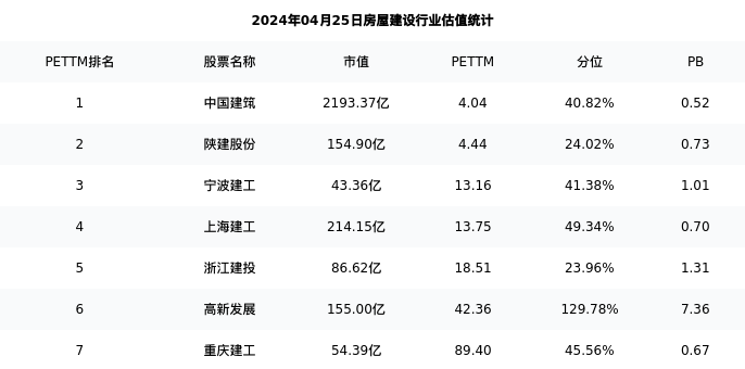 从估值角度看:宁波建工最新市盈率PETTM为13.16,在行业内排名3/8,处于41.38分位。