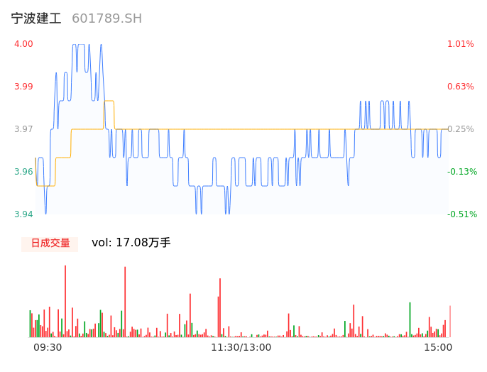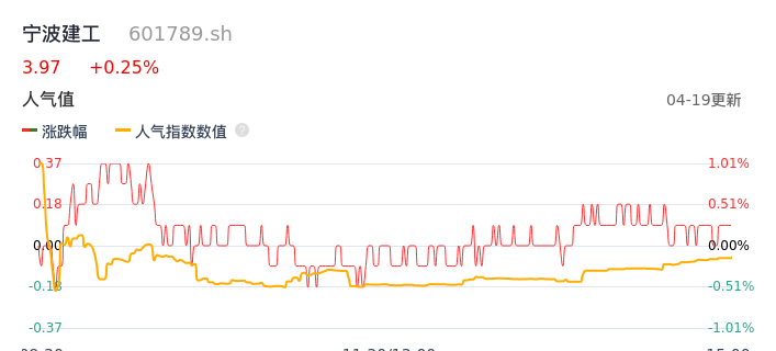 04月19日,宁波建工收报3.97,股价涨幅0.25%,成交金额6771.99万元,换手率1.57%。