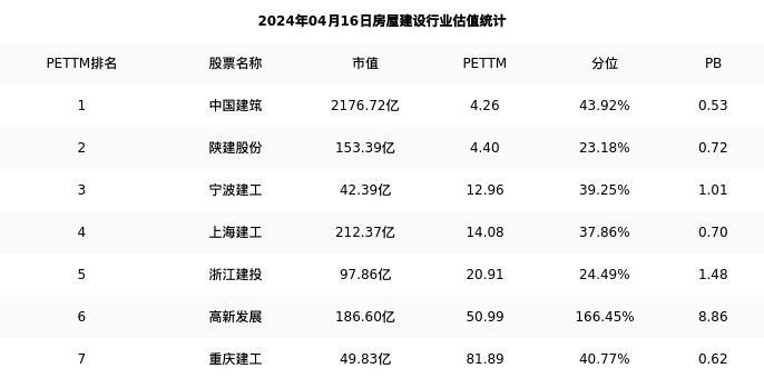 从估值角度看:宁波建工最新市盈率PETTM为12.96,在行业内排名3/8,处于39.25分位。