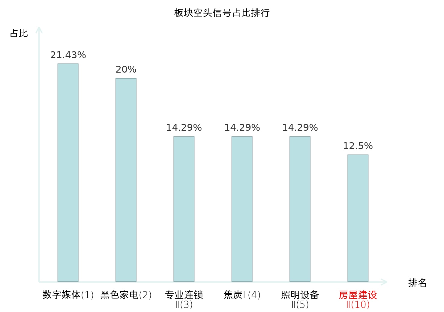 全市场所有行业板块中主力空头信号占比排名中,数字媒体板块位居第一。装修装饰Ⅱ板块名次提升最快,较昨日上升110位。