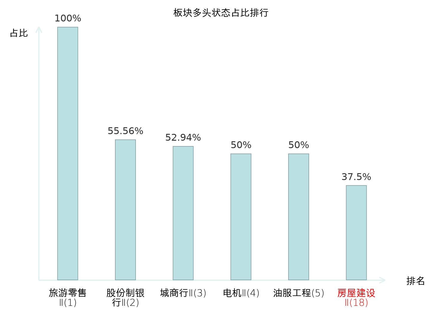 全市场所有行业板块中主力多头状态占比排名中,旅游零售Ⅱ板块位居第一。互联网电商板块名次提升最快,较昨日上升65位。