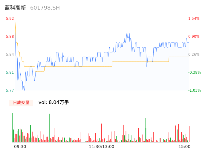 04月26日,蓝科高新收报5.87,股价涨幅0.69%,成交金额4694.77万元,换手率2.27%。