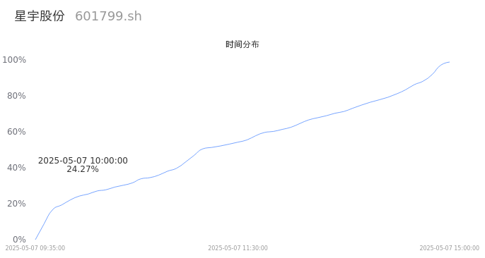 601799星宇股份2025年05月07日成交1.32万手,成交金额1.79亿,相较昨日缩量1.07万手,换手率0.46%,成交清淡。