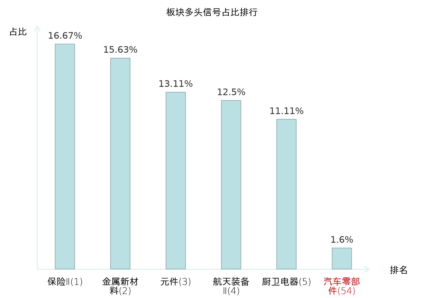 全市场所有行业板块中主力多头信号占比排名中,保险Ⅱ板块位居第一。保险Ⅱ板块名次提升最快,较昨日上升123位。