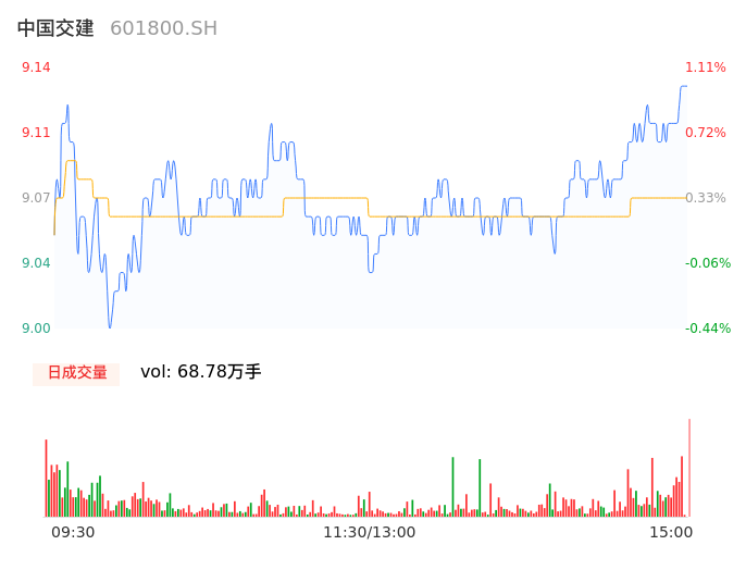 04月24日,中国交建收报9.14,股价涨幅1.11%,成交金额6.24亿元,换手率0.59%。