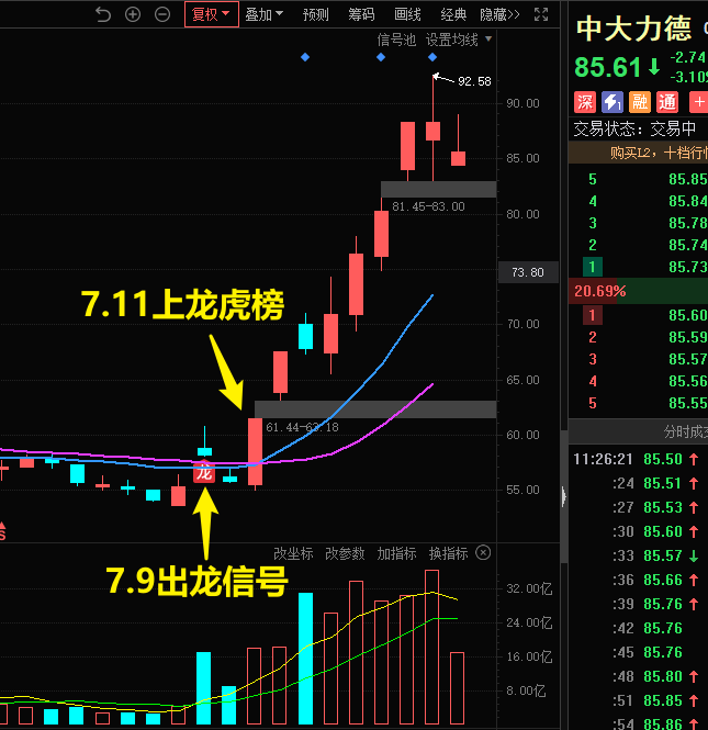 机构主导:若买一为机构且净买入占比超30%,往往预示中期行情(如7月11日中大力德获深股通专用净买入1.51亿元后连续上涨,占当日净买入占比超53%);