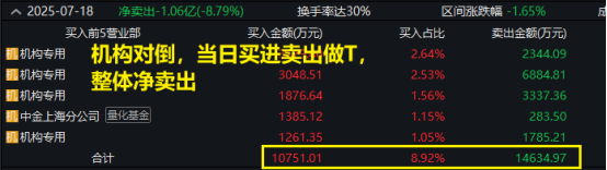 某些游资会通过不同席位“左手买、右手卖”制造虚假繁荣。例如7月18日的满坤科技龙虎榜显示,原主力机构集体对倒撤离,日内买进卖出做T当天放出巨量短期见顶。