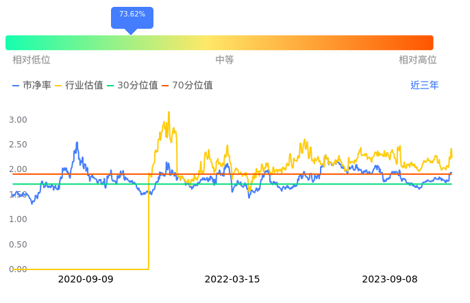中海油服当前市净率PB为1.93,在所属的油服工程中,市净率PB排6,前五名分别为中油工程市净率0.81、博迈科市净率1.14、海油工程市净率1.18、海油发展市净率1.39、惠博普市净率1.90。中海油服当前市净率PB为1.93,超过近3年73.62%的历史数据。