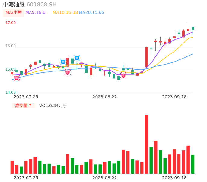值得注意的是:2023年09月中信证券的王喆分析师,首次发布关于中海油服的研究报告,标题为:中海油服(601808)2023年中报点评:借油气高景气之势 展油服油技领先之功。