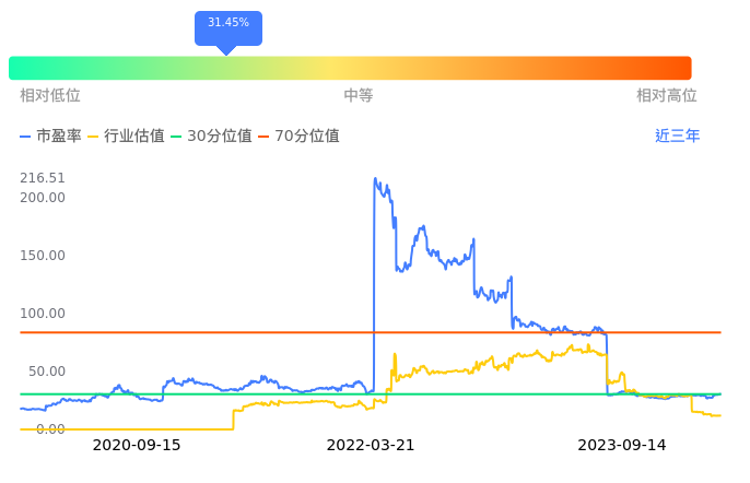 中海油服当前市盈率PETTM为30.74,在所属的油服工程中,市盈率PETTM排5名。前5名分别为中曼石油PETTM11.90、海油发展PETTM12.08、海油工程PETTM14.61、中油工程PETTM28.54、中海油服PETTM30.74。从PETTM估值走势数据来看,中海油服当前市盈率PETTM为30.74,超过近3年31.45%的历史数据。